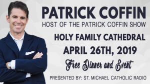 St. Michael Catholic Radio presents – Patrick Coffin from The Patrick Coffin Show When: Friday April 26th, 2019 Where: Holy Family Cathedral Info: FREE EVENT.