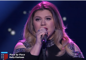 Last night Kelly Clarkson, the 1st winner of American Idol, sang an emotional song called “Piece by Piece” live on American Idol. I didn’t see