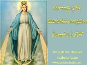 The Feast of the Immaculate Conception celebrates the solemn belief in the Immaculate Conception of the Blessed Virgin Mary (not Jesus as some misunderstand). Many